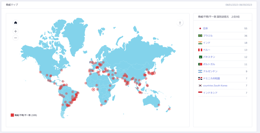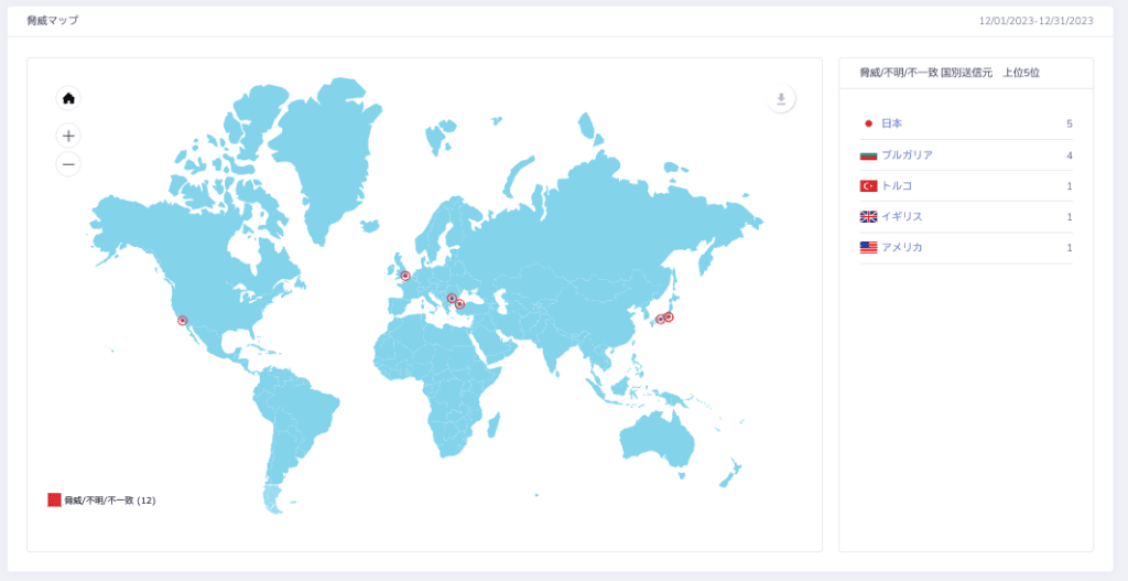 DMARCポリシーが未設定(「none:透過」)の時期(2023年6月時点)と、「reject:拒否」の時期(2023年12月時点)の比較ですが、なりすましメール対策の効果は一目瞭然です。