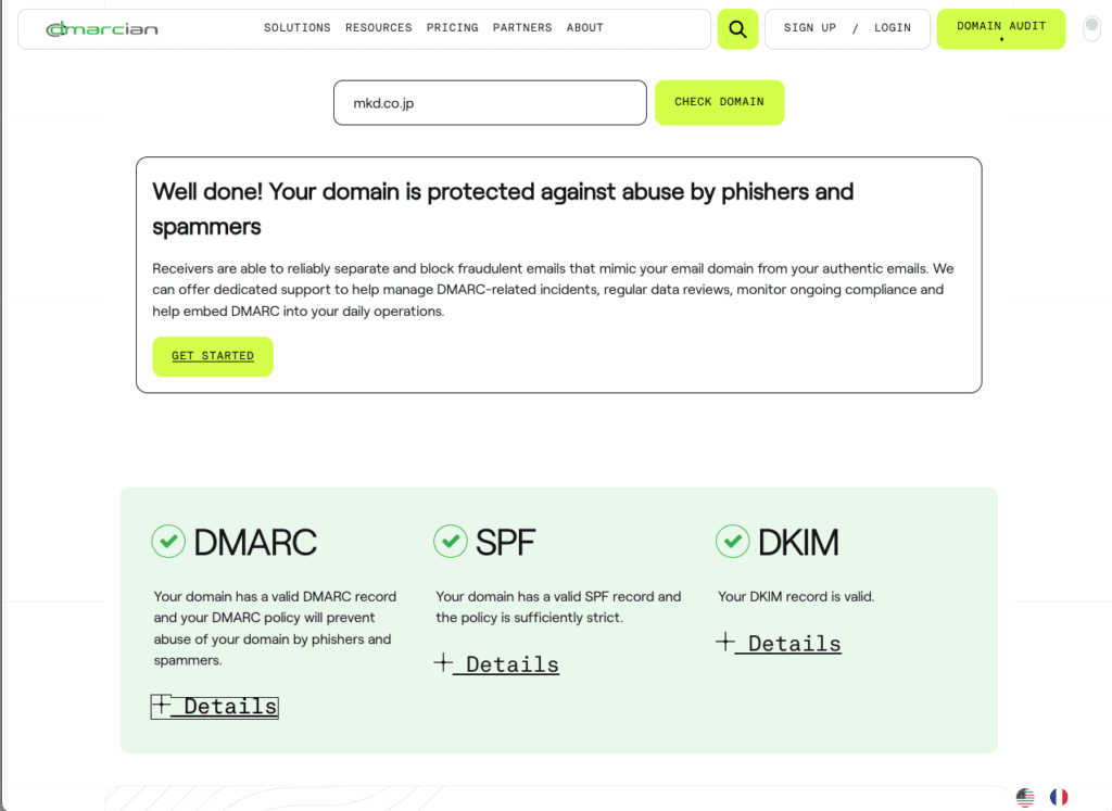 こちらのWEBサイト(https://dmarcian.com/domain-checker/ )で、自社ドメインの「なりすましメール対策」の状況を確認することができます。