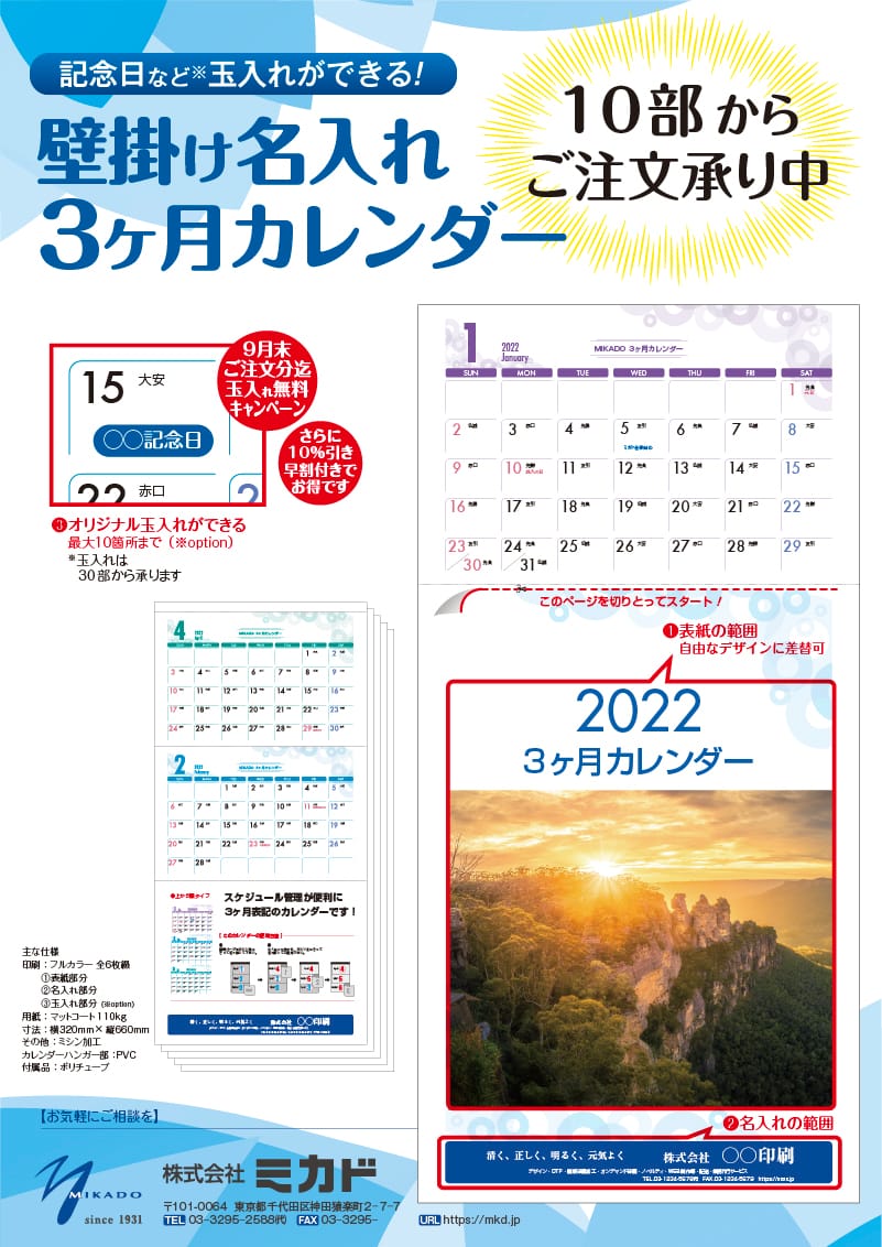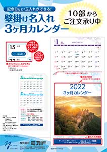 オリジナル3ヶ月カレンダー(2022年版)ご注文承り中