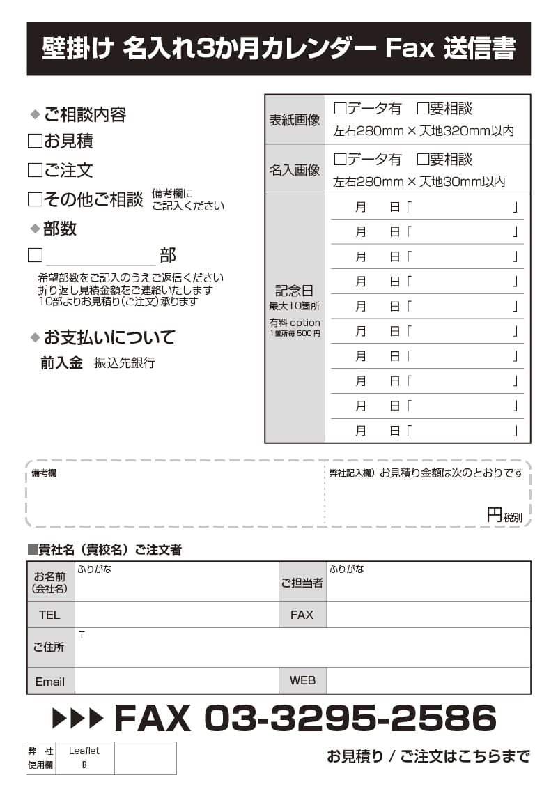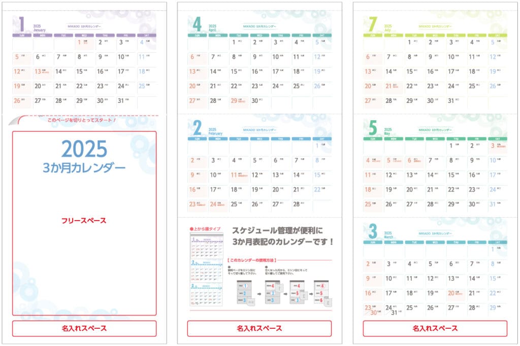 ※大部数、完全オリジナルデザインデータ支給の3か月カレンダーをご希望の場合はご相談ください。