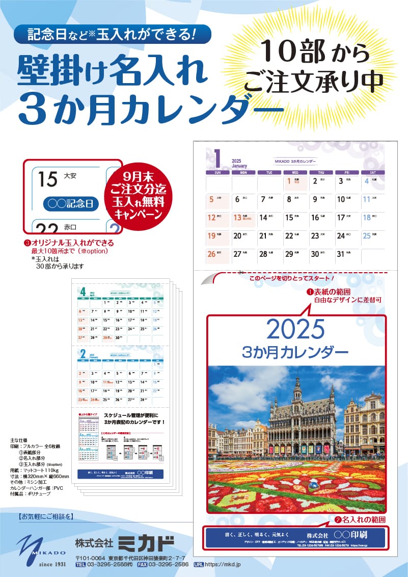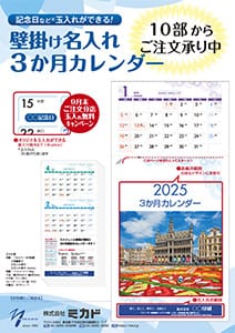 オリジナル3か月カレンダー(2025年版)ご注文承り中