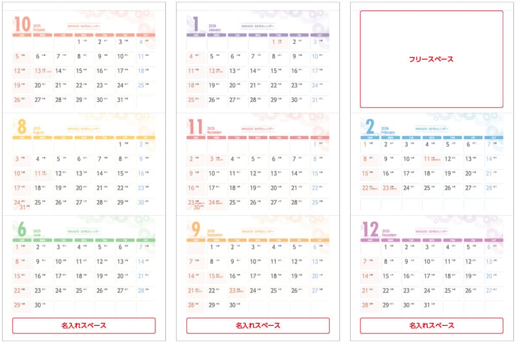✅ 完全オリジナルデザインデータ支給の3か月カレンダー制作可*